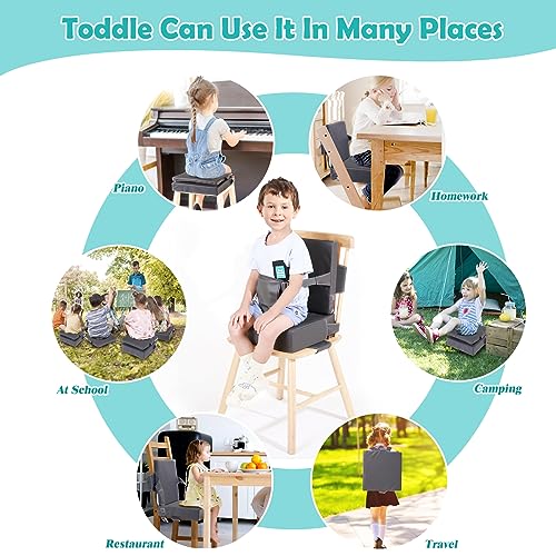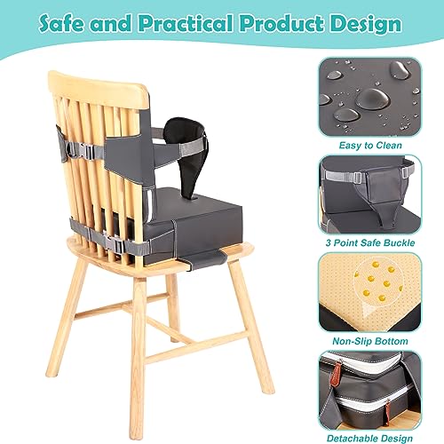 Toddler Booster Seat for Dining Table, PU Waterproof Booster Seat for Dining Table with Backrest and Adjustable Seat Belts Non-Slip Bottom Portable Travel Home Increasing Cushion for Kids Child Baby