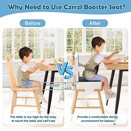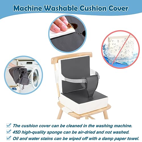 Toddler Booster Seat for Dining Table, PU Waterproof Booster Seat for Table with Backrest and Adjustable Seat Belts Non-Slip Bottom Portable Travel Home Increasing Cushion for Kids Child Baby(GY+WH)