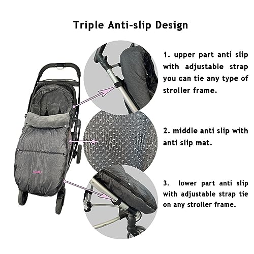 ★THREE SEASONS WEATHER RESISTANT FOOTMUFF: Comfortable waterproof melange exterior and soft premium coral fleece lining, with 3D sponge filling Which Protects Baby from Wind, Rain and Snow, keep baby comfortable warm.