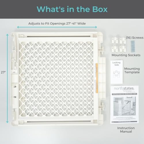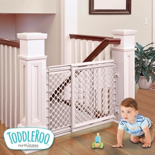 Toddleroo by North States Baby Gate for Stairs: Stairway Secure Gate. Fits Openings 27″-41″ Wide. Safety Latch, Hardware Mount. Child Gates for Doorways. Made in USA. (27″ Tall, Soft White)