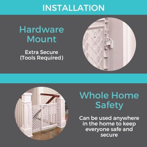 [Stylish and Dependable]: Comes in a soft white finish and fits seamlessly in any of your standard openings. The durable, American-made plastic gate is sturdy and hard to climb!