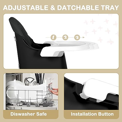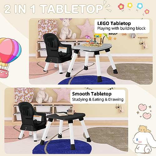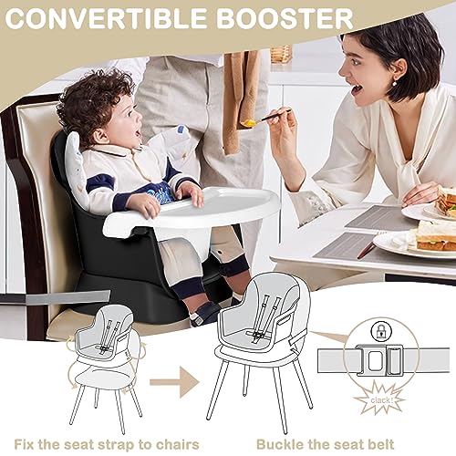 TODEFULL Baby High Chair, 8 in 1 Convertible Highchairs for Babies and Toddlers, Children Dining Booster Seat/Kids Building Block Table for Girls Boys, Baby Seat with Removable Tray, Black