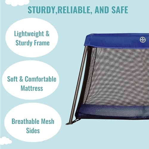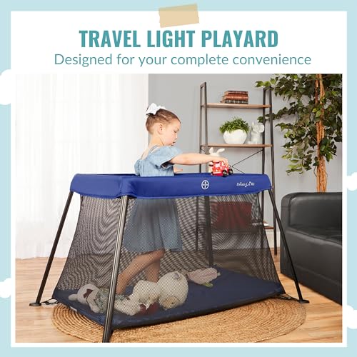 Travel Light Playard in Blue, Lightweight, Portable and Easy to Carry Baby Playard, Indoor and Outdoor – With a Soft and Comfortable Mattress Pad