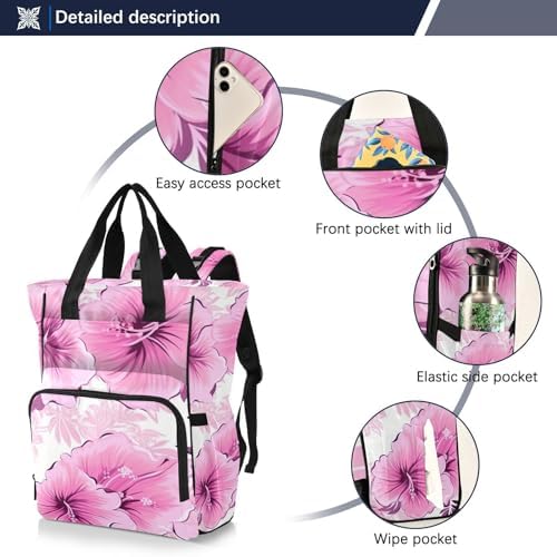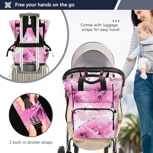 Tropical Hibiscus Flowers Diaper Bag Backpack for Baby Boys Girls Multifunction Travel Tote with Stroller Straps & Bottle Storage Maternity Travel Bag for Traveling Shopping Hiking Moms Dads