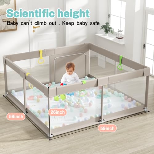 UANLAUO Baby Playpen with Mat, 59x59inch Playpen for Babies and Toddlers, Extra Large Baby Playpen,Kids Play Pen,Baby Fence,Big Playpen for Infants with Gate,Playard for Baby