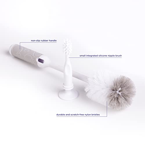 Ubbi Baby Bottle Brush Set, Bottle Brush and Nipple Brush, Baby Cleaning Essentials, Gray