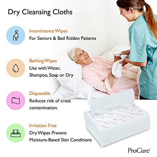 These super soft Dry Wipes by ProCure Products are made with ultra soft non woven materials. There is no limit to what they can be used for; they are comfortable on skin, for babies, seniors and adults; they are durable and absorbent disposable cleaning cloths; and they are conveniently packaged for one handed dispensing at home or for travel.Unscented and with no harmful additives, they are safe on all skin types, even sensitive skin. To use, just add water!These are the very same quality disposable washcloths they use in hospitals and nursing homes. They are awesome for babies and incontinence patients alike. Non Flushable