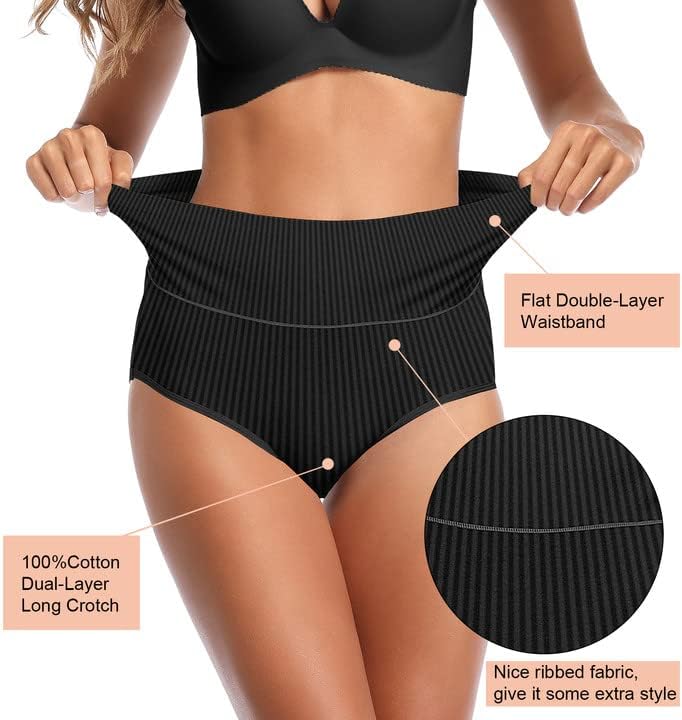 UMMISS Womens Underwear Cotton High Waist Tummy Control Top Panties No Muffin Top Full Coverage Ladies Briefs