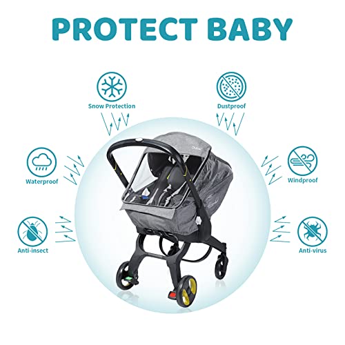UNIVERSAL SIZE & EASY TO INSTALL: Infant Rain Cover could fit most infant car seats(0-6 months) with stretchable elastic straps on the bottom for extended girth and height.If the transparent window has wrinkles when the rain cover arrives, smooth it out with a hair dryer (turn on the lowest heat and keep a proper distance)