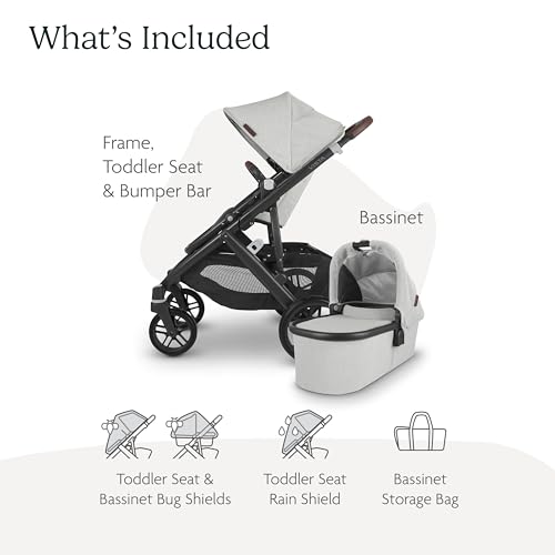 UPPAbaby Travel System, Includes Vista V2 Stroller + Mesa Max Car Seat Combo/Bassinet, Toddler Seat, Rain Shield, Storage Bag, Car Seat, Base + Robust Infant Insert Included/Anthony (White + Grey)