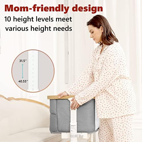 🚼【Co-Sleeper】Bedside bassinet & baby crib & changing station 3 in 1,allows moms to feed or comfort as easy as possible. Simply lower the bassinet wall for quick access. 5 music and 3 white noise options help soothe the baby.