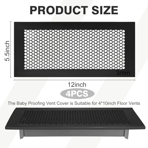 VIHOSE 4 Pcs Baby Proofing Vent Covers for 4 x 10 Inch Floor Registers Silicone Air Vent Covers Protective Child Proof Vent Covers for Home Floor Wall Ceiling Air Vent Deflector Cover (Black)
