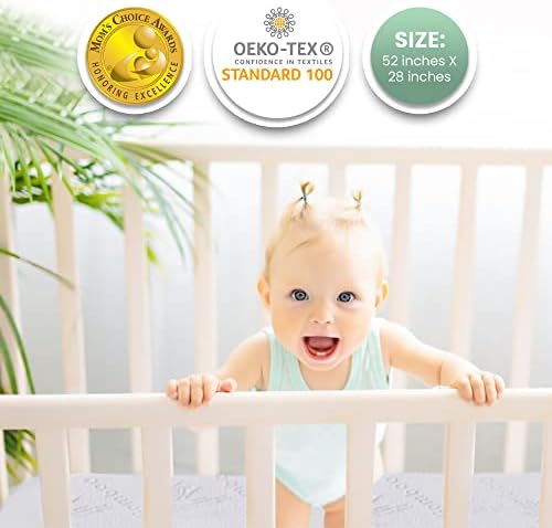 PERFECT FIT: Our crib mattress protector is sized at 52″ x 28″ to snugly fit USA standard crib mattresses. It features fully elasticized skirting and a deep 9″ pocket, ensuring it stays in place even with a wiggly baby.
