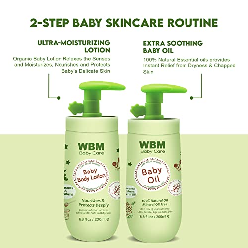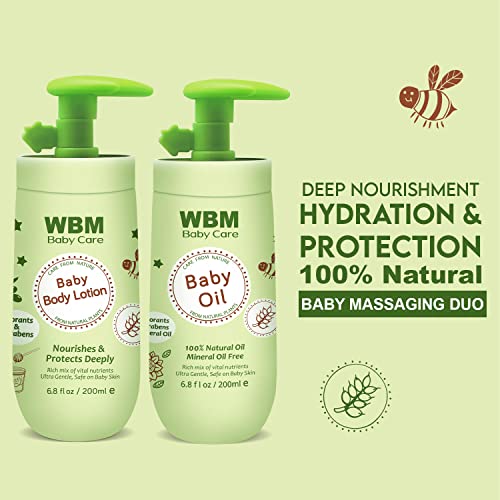 WBM Baby Oil & Baby Lotion Set For Soft and Healthy Skin Care, Moisturizing & Nourishing Newborn Essentials With 100% Natural Ingredients and Vitamin E