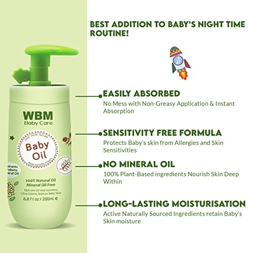 RICH WITH VITAMIN E: WBM Baby Care baby oil is rich in vitamin E, a powerful antioxidant that deeply penetrates the skin to seal in moisture and promote healthy skin.