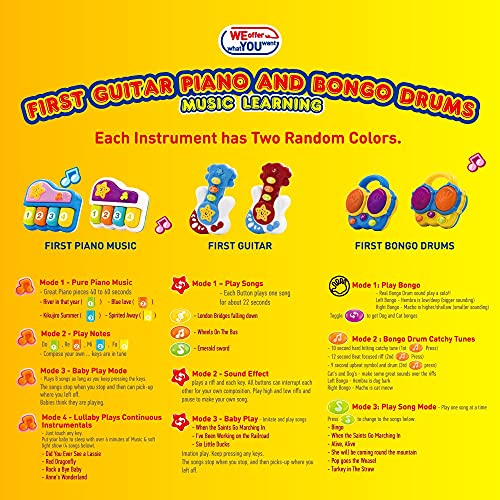 WEofferwhatYOUwant Portable Set of 3 (Piano, Bongo Drums, Guitar) Educational Toy for Music Learning and Entertainment for Ages 6 Months to 4 Years. All 6 Batteries Included.