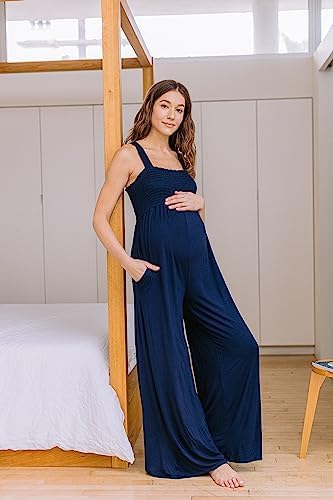 Women’s Maternity Sleeveless Jumpsuit Romper with Smocked neck and pockets