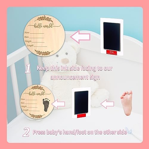 Wooden Baby Announcement Sign, Hello World Newborn Sign With Pen And Ink Pad, Birth Announcement Sign, Baby Name Announcement Sign Newborn for Nursery Gift Baby Photo Prop Shower Keepsakes