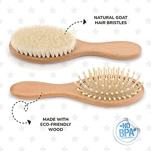 Wooden Baby Brush Set, Natural Soft Bristles with Comfort Handle, Set Toddler Brush