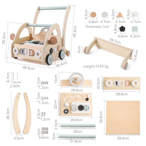 Safety and Stability: This baby walker with wheels is made of high quality nature wood, offers a sturdy and low gravity center design, ensuring your baby’s safety while they learn to walk. The strong construction and reliable grip provide maximum support for your little one. The Edges of the baby push toy with environmental friendly paint are round polished to prevent injury.