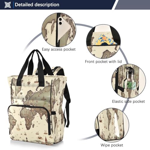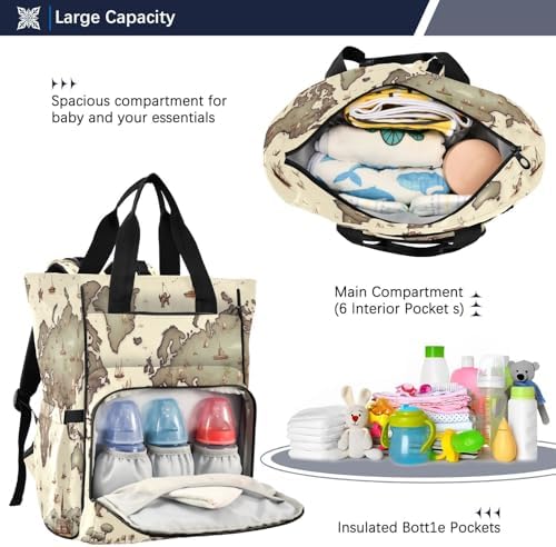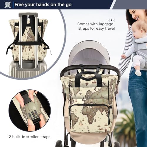 World Map Diaper Bag Backpack Baby Bag Large Capacity Travel Changing Bag Waterproof Diaper Backpack with Insulated Pockets & Stroller Straps