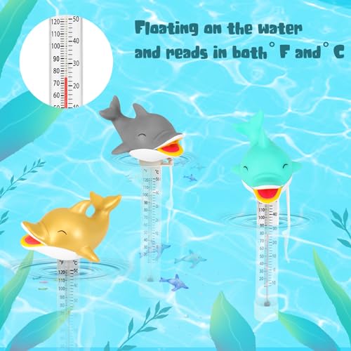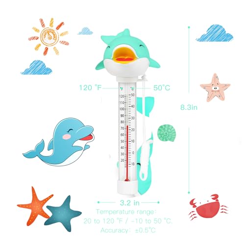 XY-WQ Floating Pool Thermometer, Large Size Easy Read for Water Temperature with String – Swimming Pool, Spas, Hot Tubs, Ponds (Dolphin3)
