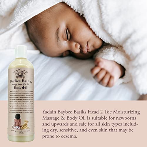 Yadain Baybee Basiks Head 2 Toe Moisturizing Massage & Body Oil | Baby Bath Oil Moisturizer For Sensitive Skin & Hair, 12oz