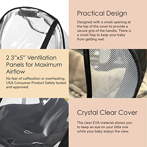 UNIVERSAL FIT: This stroller rain cover fits all standard size car seats & is super easy to install. Attach your carseat rain canopy on your car seat and place in stroller to have a hassle free trip with your baby.