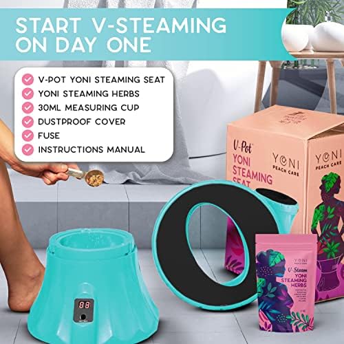 Yoni V-Pot Kit, Electric Steaming Seat for Women with Steaming Herbs – Supports Healthy Ph Balance, Menstrual Support, Postpartum Care, Cleanse Vaginal Odor and Dryness – Feminine Care Product