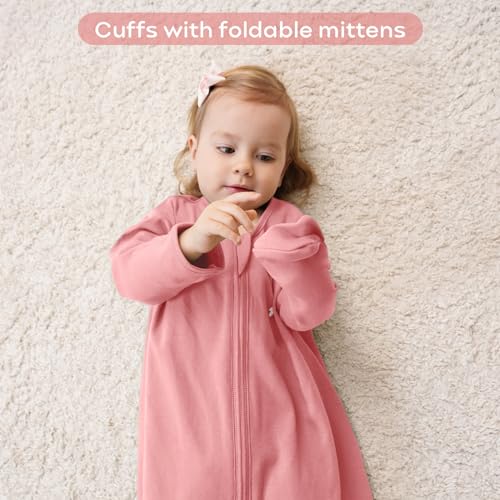 Long Sleeves with Mitten Cuffs: Long sleeve baby wearable blanket minimizes the chances of becoming chilled, ensures free arm movement and warmth for your little one when napping in cool summer A/C room and sleeping at chilly spring,autumn and winter nights. What’s more, this baby sleep sacks with eversible mitten hand covers can be adjusted according to temperature, ensuring the baby’s hands stay warm.