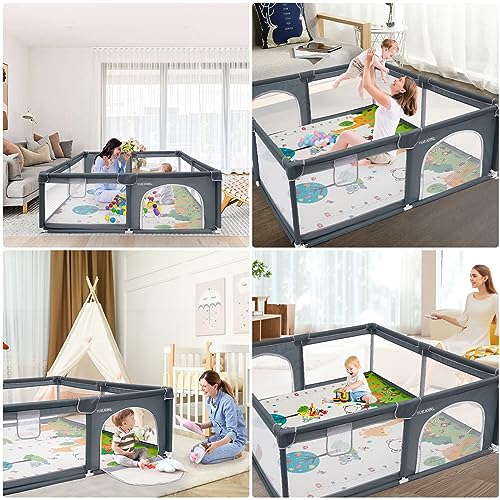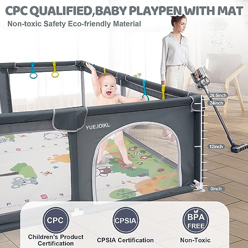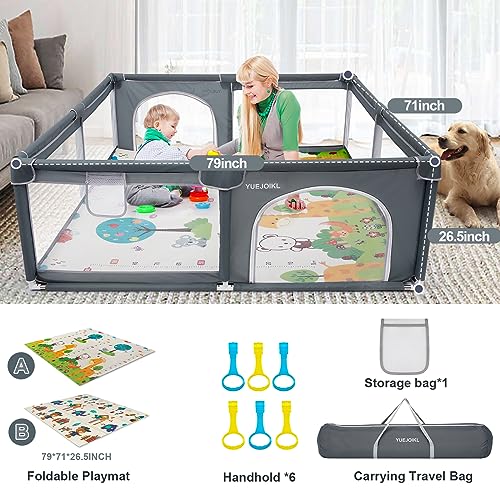 YUEJOIKL Baby Playpen with Mat, 79"x71"x26.5"Large Baby Play Yard for Babies and Toddlers, Indoor & Outdoor Extra Large Kids Activity Center, Sturdy Safety Play Playards for Babies, with 0.4" Playmat