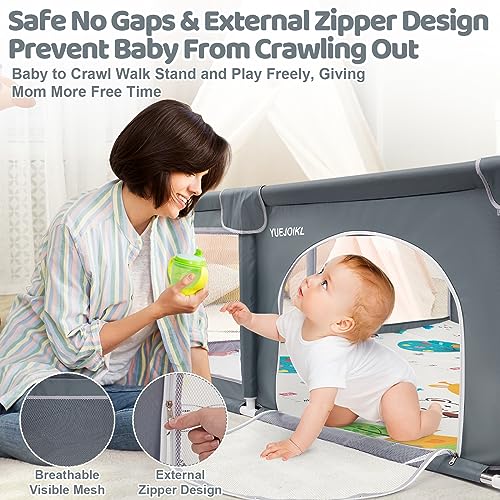 YUEJOIKL Baby Playpen with Mat, 79″x71″x26.5″Large Baby Play Yard for Babies and Toddlers, Indoor & Outdoor Extra Large Kids Activity Center, Sturdy Safety Play Playards for Babies, with 0.4″ Playmat