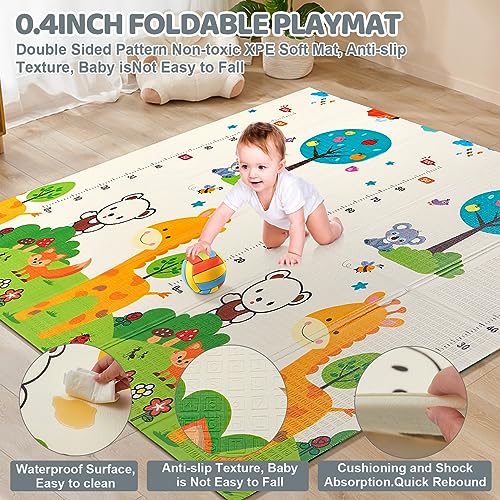 [DOUBLE SIDED PATTERN PLAYMAT] – With high elasticity XPE soft mat that fits perfectly in the size 79x71x26.5in to cushion any falls that the baby may have. The playmat can be used alone, it has two colorful and textured sides to keep the baby busy and able to practice crawling without sliding
