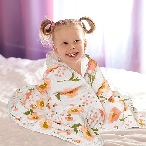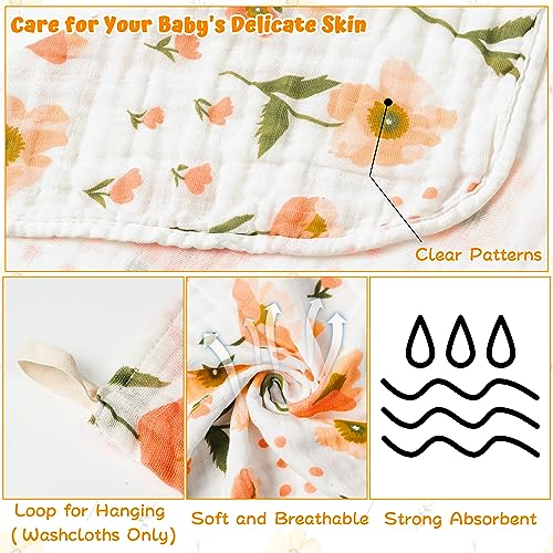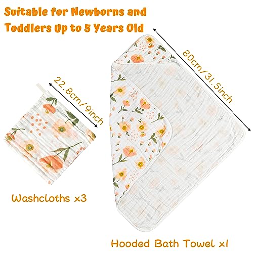 Zainpe 4Pcs Muslin Baby Hooded Towel & Washcloth Set Flowers Soft Absorbent Bath Towels Cotton Hand Towels Infant Shower Gifts for Newborn Toddler Boys Girls Feeding Teething Sleeping 31.5 X 31.5 in