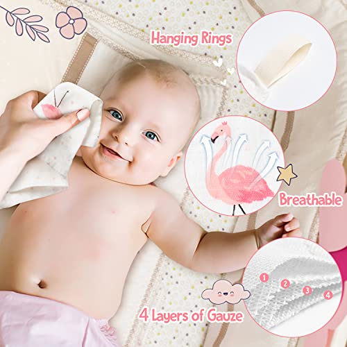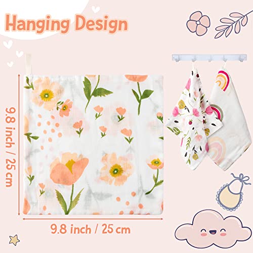 Zainpe 7Pcs Baby Muslin Washcloths Cotton Baby Bath Face Towels Flowers Flamingo Star Pattern Newborns Wash Cloth with Hanging Loop Reusable Unisex Baby Wipes for Girls Infants Kids 9.8 x 9.8 Inches