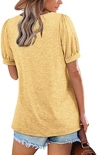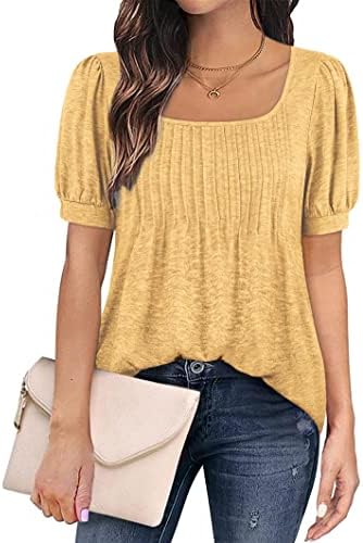 Zwurew Women’s Summer Casual Puff Short Sleeve T-Shirts Square Neck Pleated Flowy Trendy Tunic Tops for Leggings S-2XL
